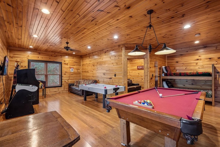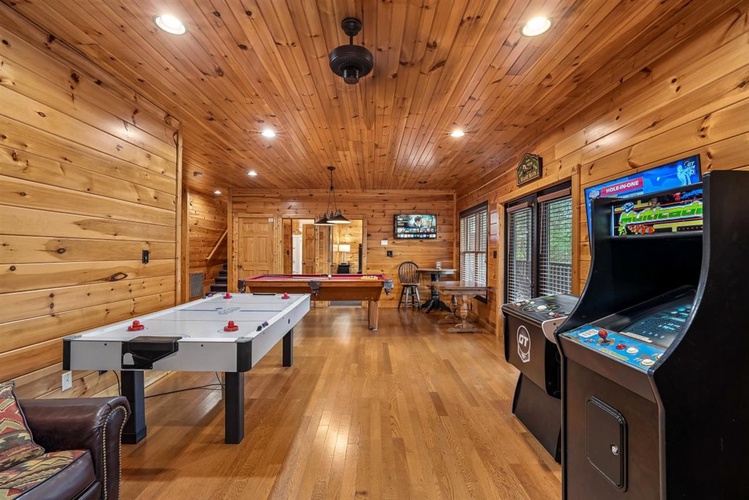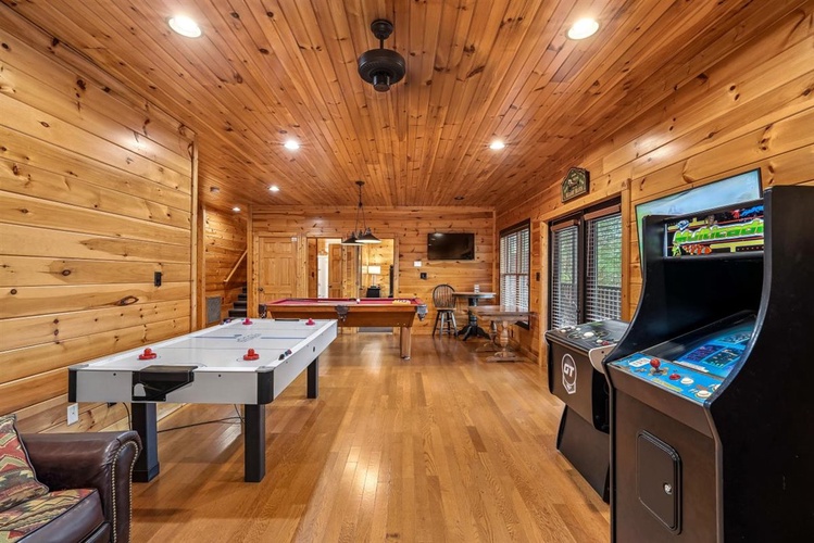 Spend evenings in your own theater room with theater seating or challenge friends in the game room equipped with pool table, air hockey, pinball, and classic arcade cabinets. - Outdoor Hot Tub & Multiple Decks