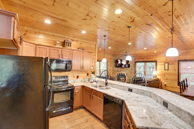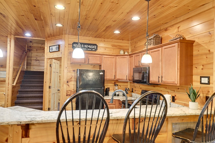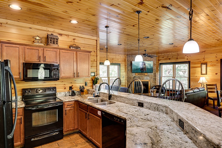 Relax in the hot tub with sweeping mountain and valley views, or enjoy coffee and conversation from rocking chairs spread across three spacious decks. - Well-Equipped Kitchen & Living Space