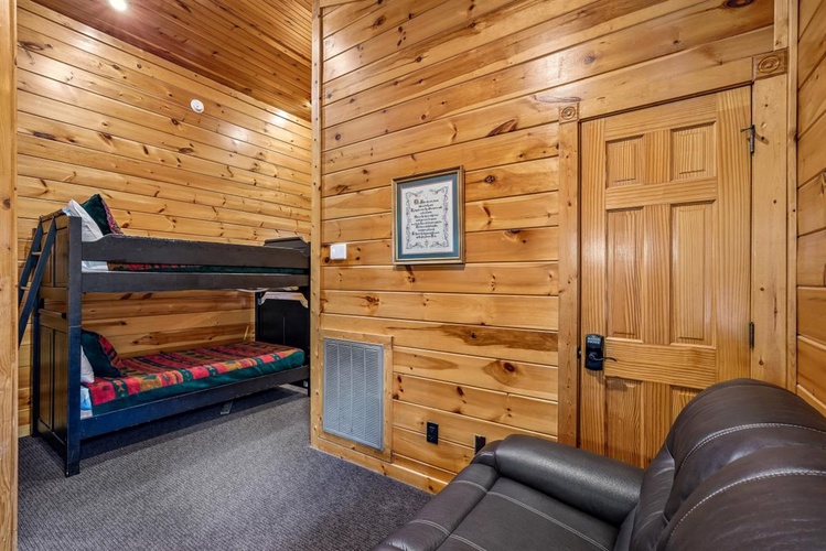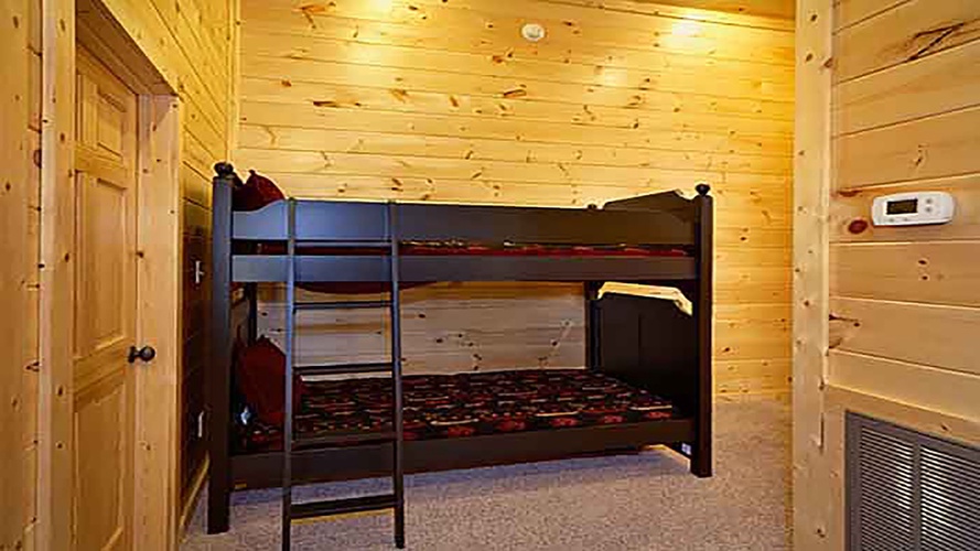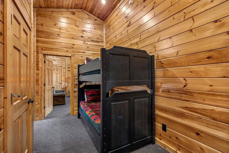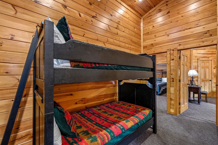 Five king bedrooms—all with private baths—plus sleeper sofas and bunk options, comfortably hosting large families and groups up to 18. - Private Theater & Game Room
