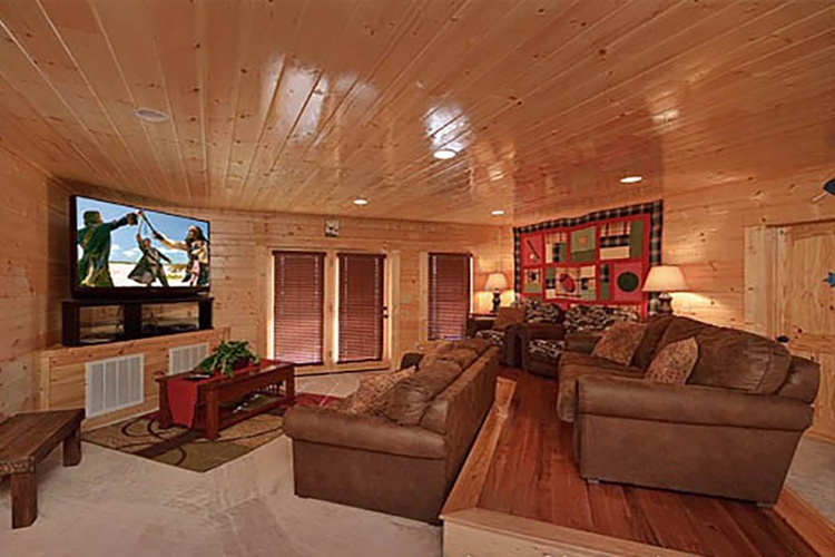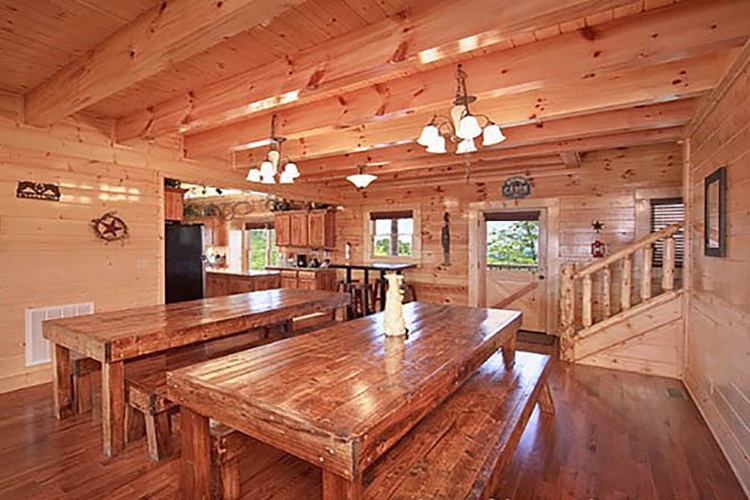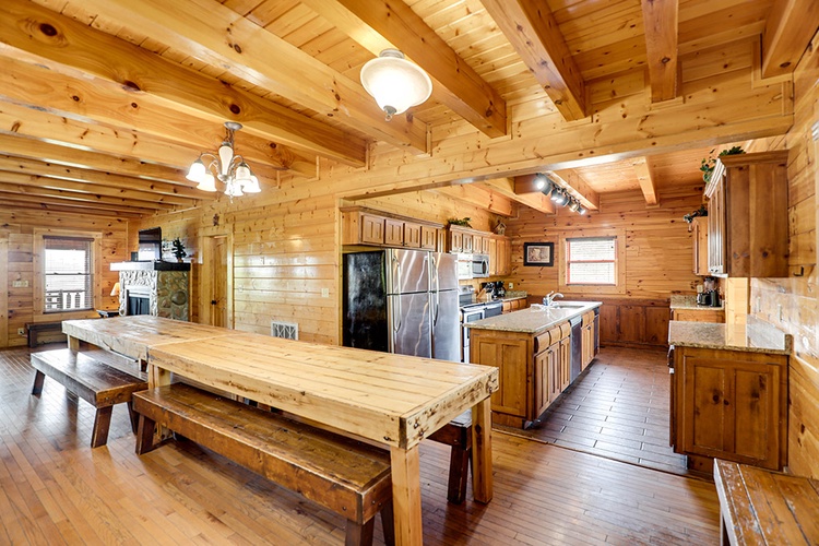 - Spacious Accommodations: With 12 bedrooms and 12 bathrooms, the cabin comfortably sleeps up to 58 guests, offering ample space for everyone.