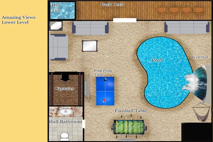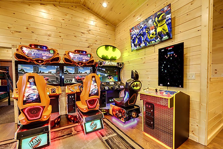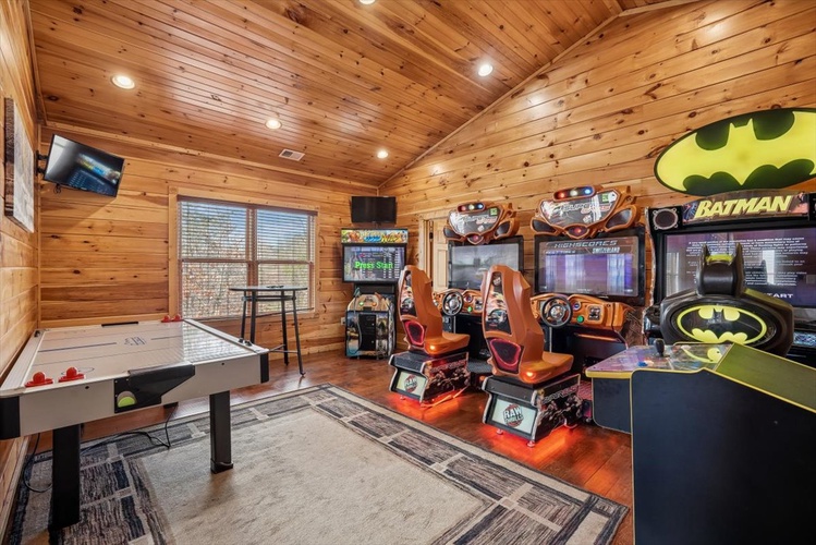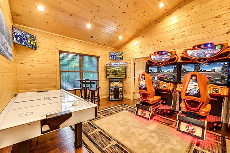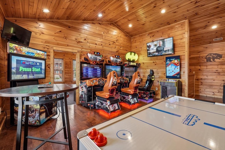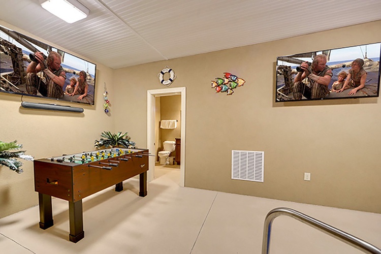 - Game lovers will enjoy the full-size pool table, air hockey, foosball, abundant arcade games, and a sound-bar equipped media room for streaming.