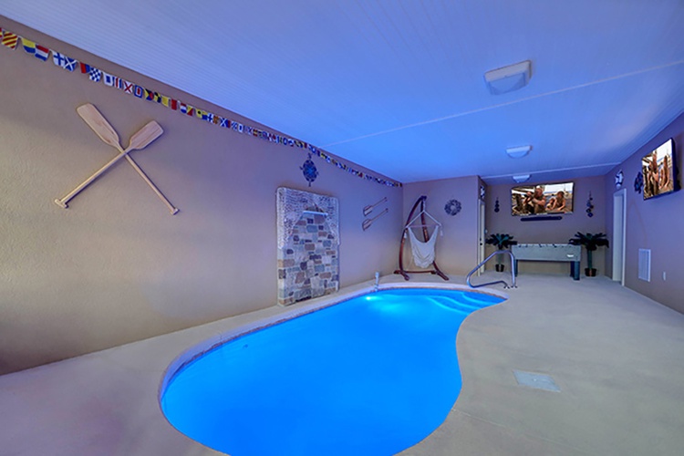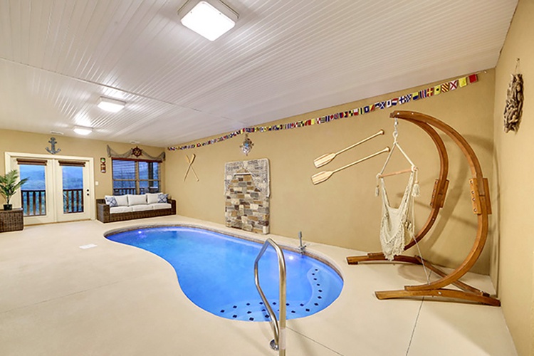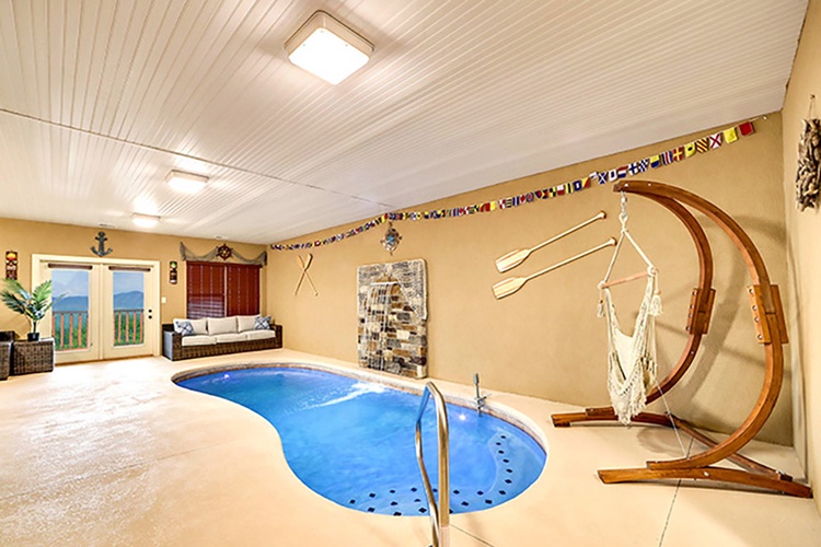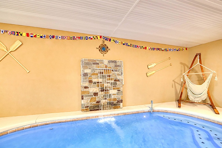 - Dive into your own heated indoor pool year-round, then unwind in the hot tub situated on the deck—perfect for relaxing with a view.