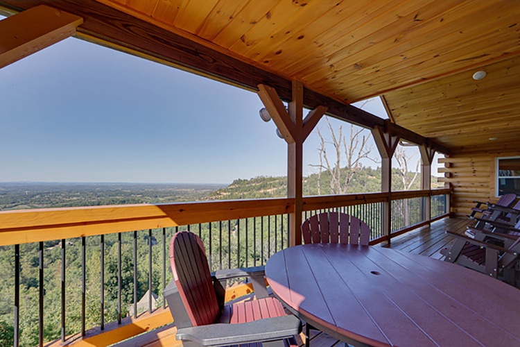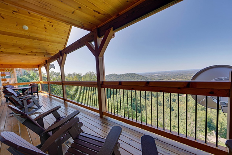 Relax in your private hot tub or on the expansive deck surrounded by rocking chairs—soak in dramatic ridge and valley vistas that give this cabin its name. - Entertainment Central