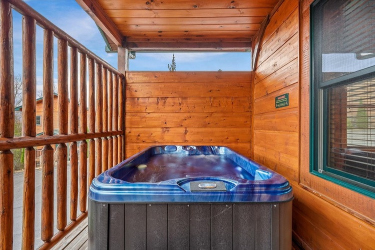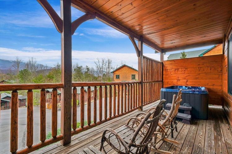 - Relax in the private hot tub while soaking in mountain views