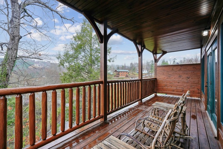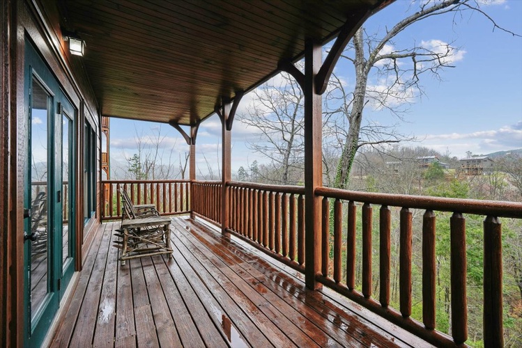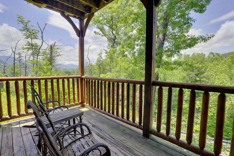 Relax in the private hot tub on the deck or enjoy the mountain vista from one of six rocking chairs—perfect for morning coffee or peaceful evenings. - Spacious & Cozy Sleeping: