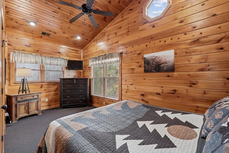 Located in the scenic Parkview Resort just minutes from Gatlinburg, Bear Cave is a stylish 3-bedroom, 3-bathroom cabin that sleeps up to 10 guests. Ideal for families, groups, and multi-generational stays, this retreat combines fun-packed interiors with tranquil mountain surroundings.