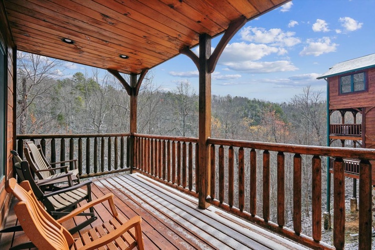 • Relax in the private hot tub or on the deck’s eight rocking chairs while enjoying vivid mountain vistas