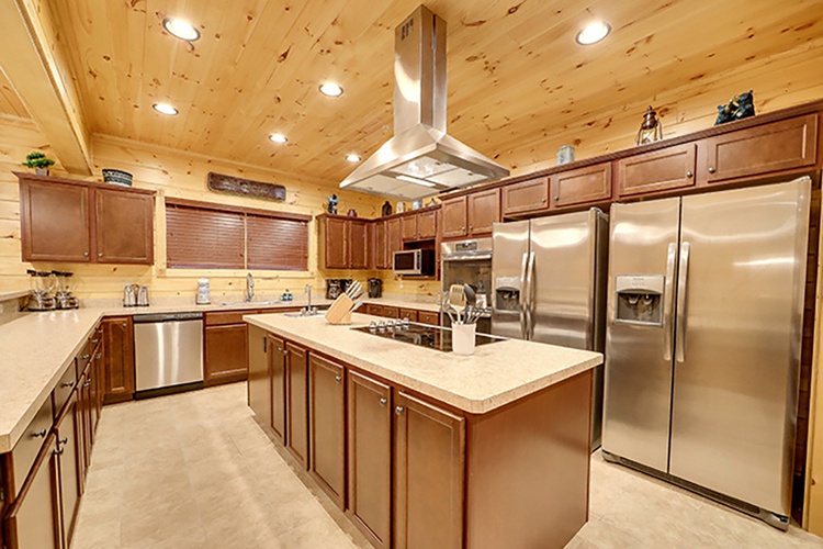 Relax in either of the two oversized hot tubs on the deck, surrounded by panoramic views of the Smoky Mountains and swaying rocking chairs for serene moments at sunrise or under the stars. - Chef’s Kitchen & BBQ
