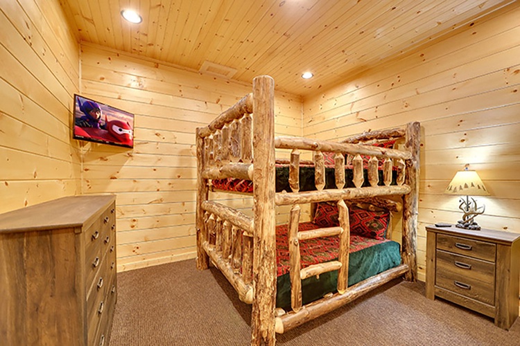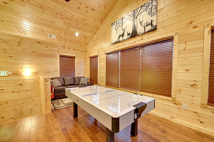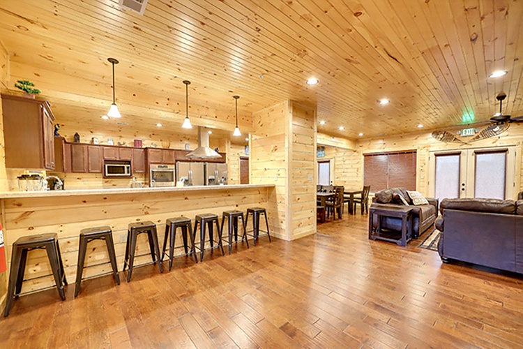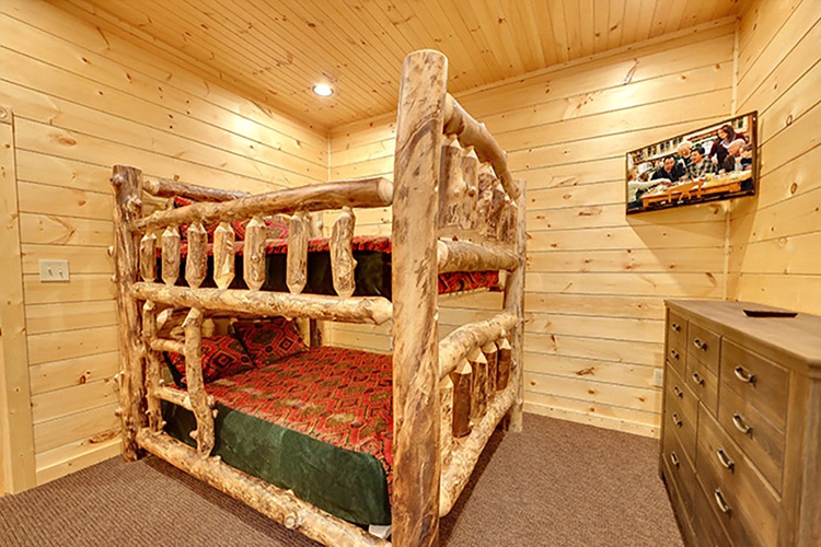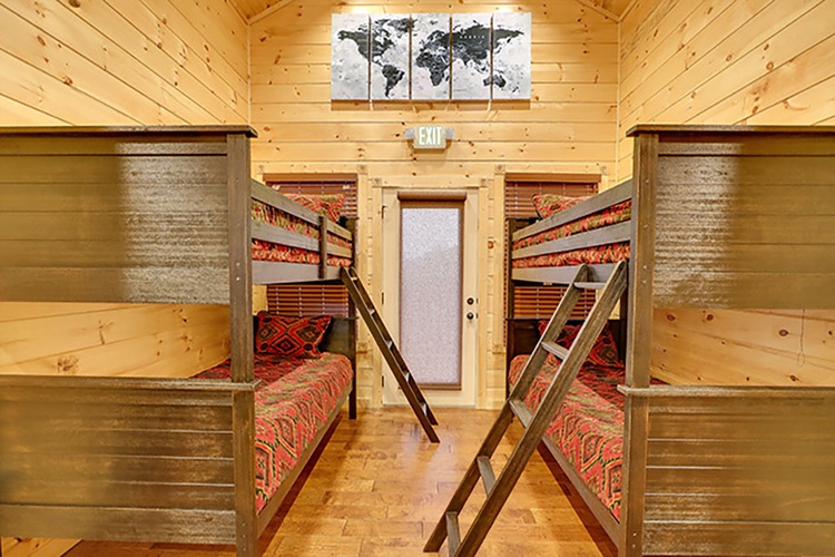 Spread across three levels, this cabin includes nine bedrooms, multiple loft areas, and sleeper sofas—easily accommodating up to 32 guests. Configurations include king suites, bunk rooms, and sofa beds in living spaces. - Built for Entertainment