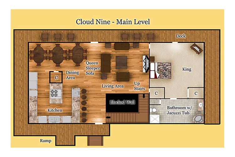 Cloud Nine delivers a premier mountain retreat experience with its grand scale, top-tier entertainment, breathtaking views, and proximity to Smoky Mountain attractions. Perfect for large gatherings, this property elevates the cabin experience to luxurious new heights. Book now and elevate your group adventure in the Smokies!
