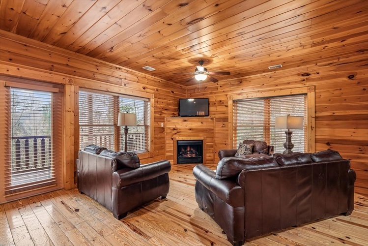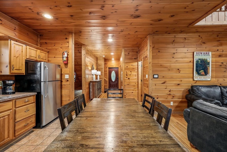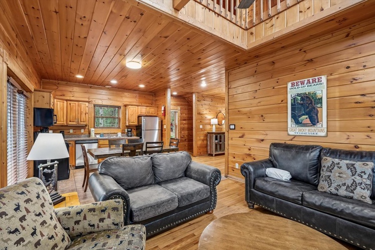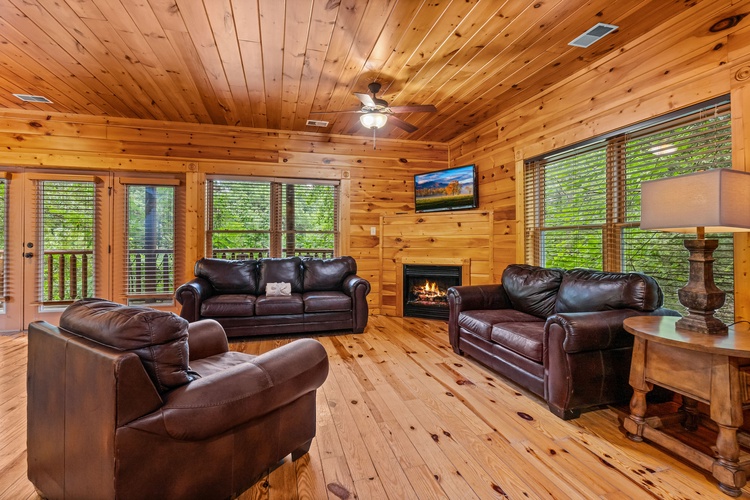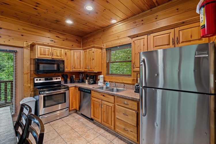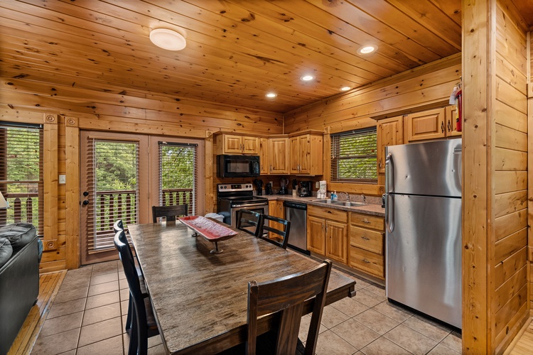 The cabin offers two king bedrooms, a twin bunk bed, and three queen sleeper sofas, ensuring ample space for all guests. - Fully Equipped Kitchen