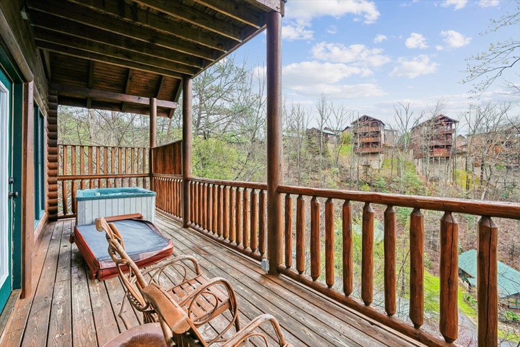 The spacious deck is equipped with rocking chairs, perfect for sipping morning coffee or watching the sunset. After a day of exploration, unwind in the private hot tub, soaking in the tranquil surroundings. - Convenient Amenities