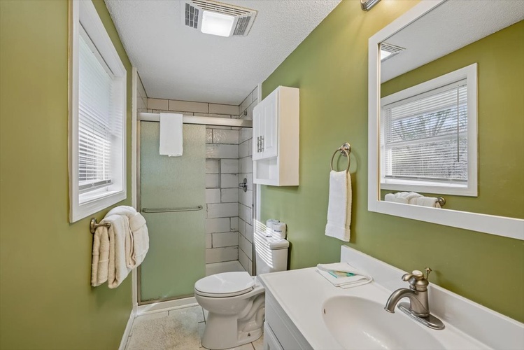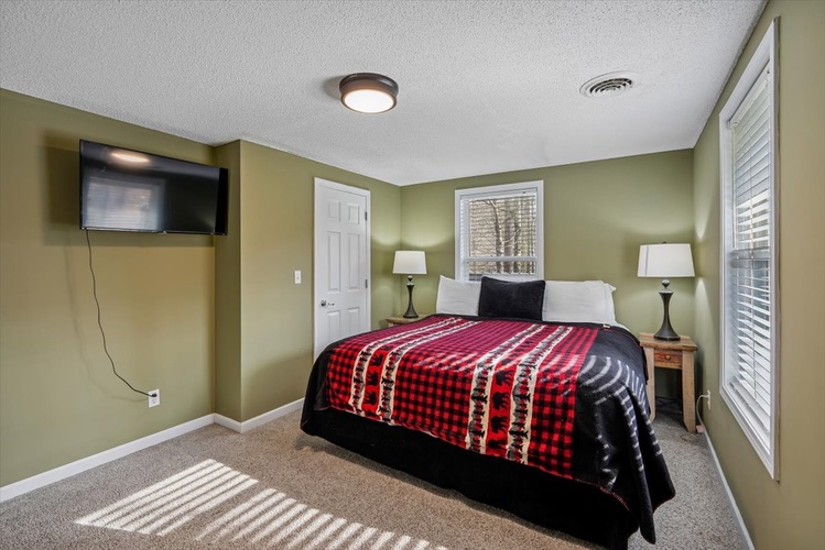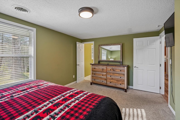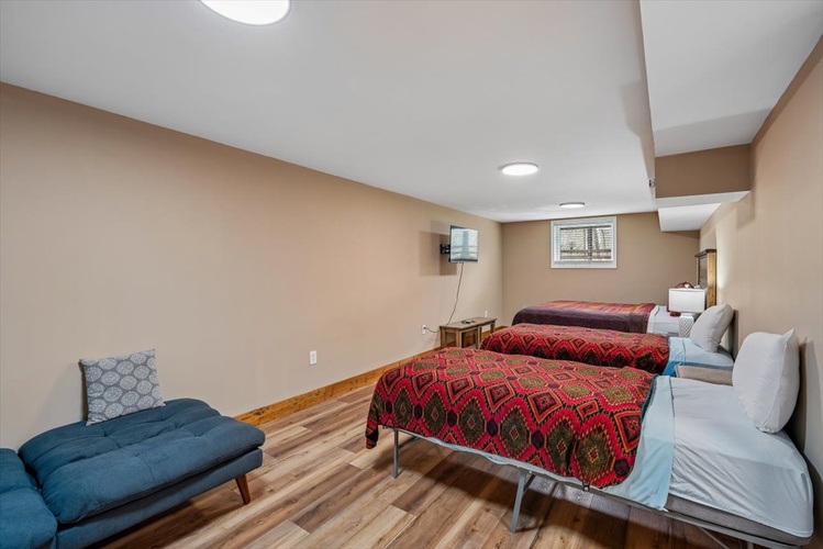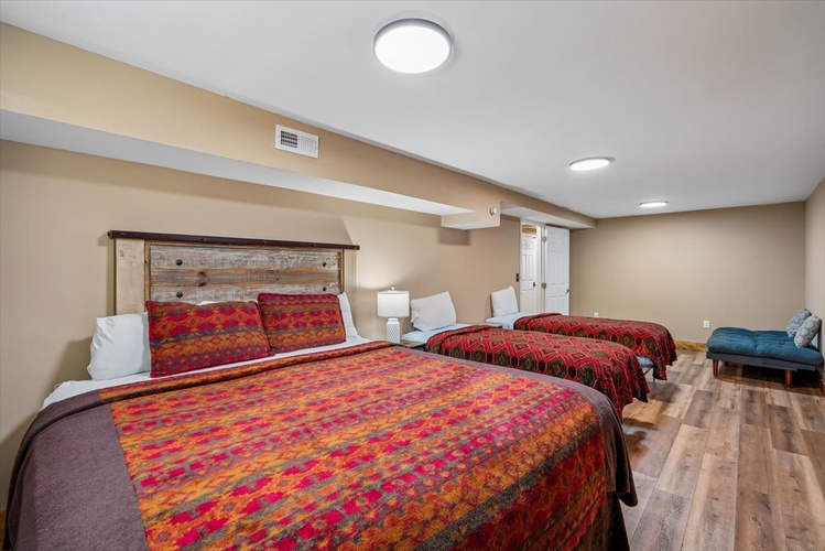 Five bedrooms (kings, queens, and snug loft options) and three bathrooms provide flexible sleeping arrangements, ideal for families or multi-generational stays.