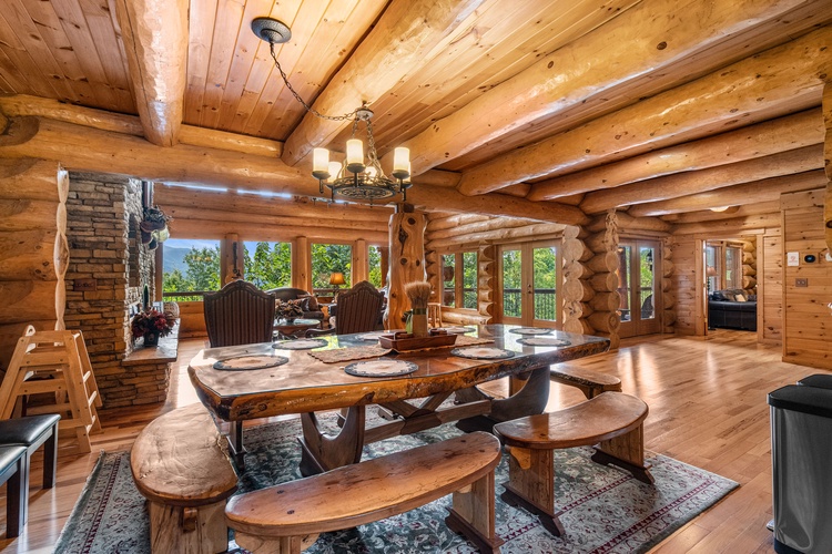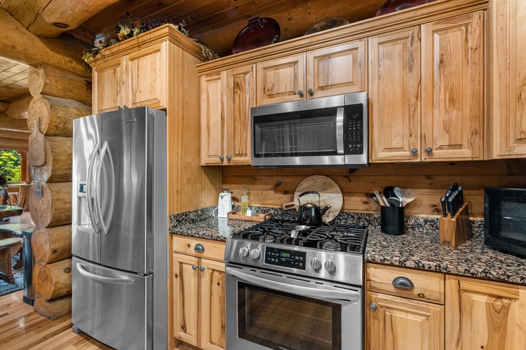 Step into warm, lodge-style living with soaring ceilings and comfy seating around the fireplace. The open layout flows into a fully stocked kitchen—refrigerator, oven, stovetop, microwave, dishwasher, coffee/tea maker, cookware & bakeware—plus a separate dining area ready for pancake breakfasts and celebratory dinners. Doors open to furnished decks for fresh mountain air and easy grilling.