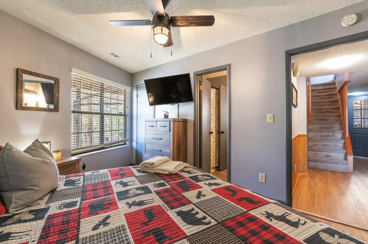 The great room's vaulted ceilings, stone fireplace, and open-concept layout create a warm, inviting space to gather after a day of exploration. - Comfortable Sleeping Quarters
