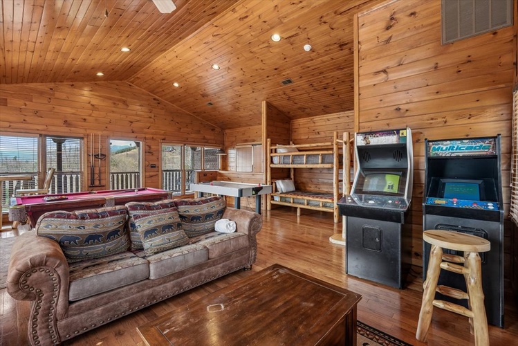 Lazy Bear Lodge HV is a rustic yet elegant 3-bedroom, 4-bathroom cabin nestled in the scenic Hidden Valley area near Gatlinburg, Tennessee. Designed to accommodate up to 12 guests, this cabin offers a perfect blend of comfort and entertainment, making it an ideal choice for families or groups seeking a memorable Smoky Mountain getaway.