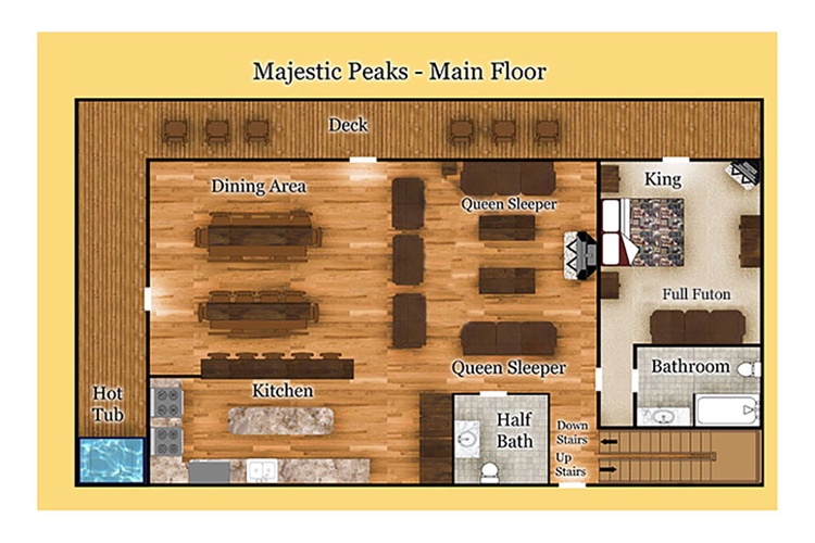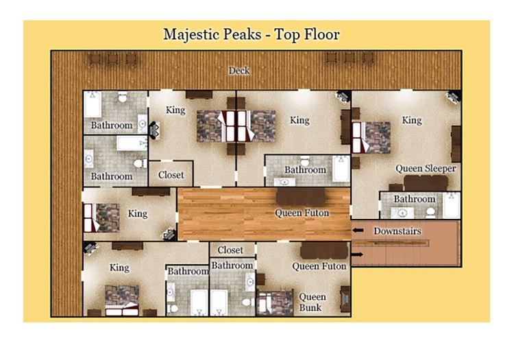 Majestic Peaks offers a breathtaking blend of scale, entertainment, and scenic beauty—perfect for large families, corporate retreats, or reunion gatherings. Whether you're entertaining indoors, dining with mountain views, or exploring the park, this lodge delivers a Smoky Mountain experience you'll treasure. Reach out to plan your grand group gathering in this majestic mountain masterpiece!