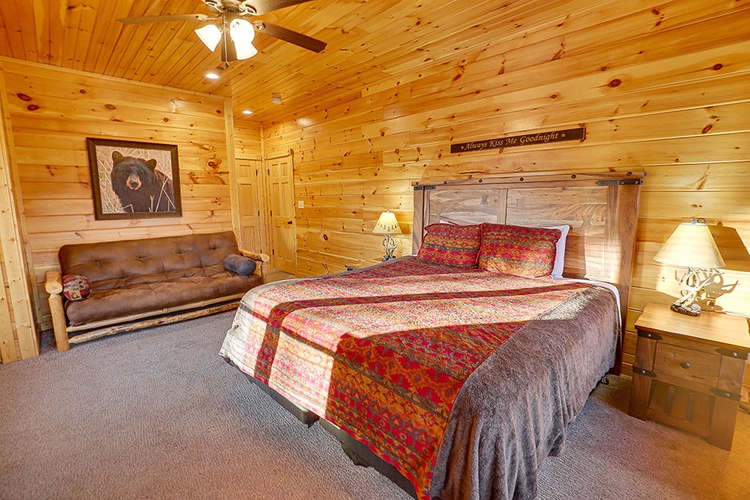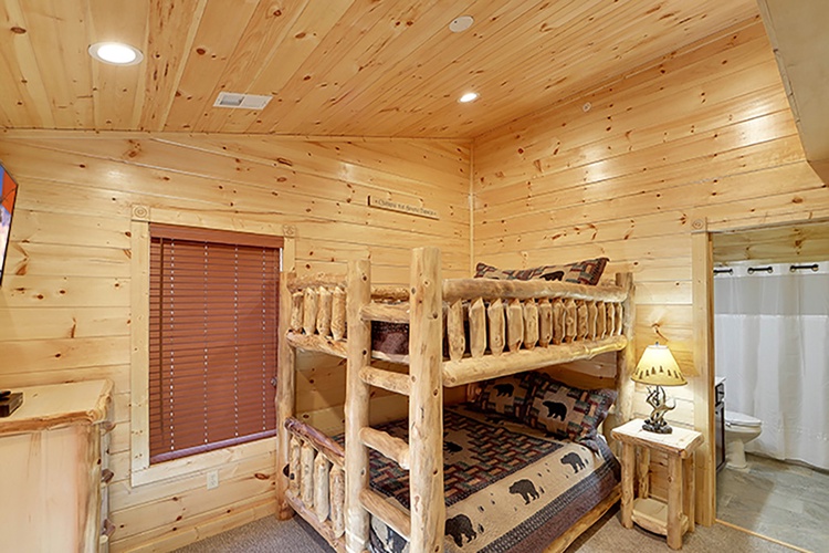 With nine bedrooms (including eight king suites), queen sleeper sofas, futons, and bunk beds, this lodge comfortably sleeps 34 guests while maintaining privacy. - Entertainment Haven