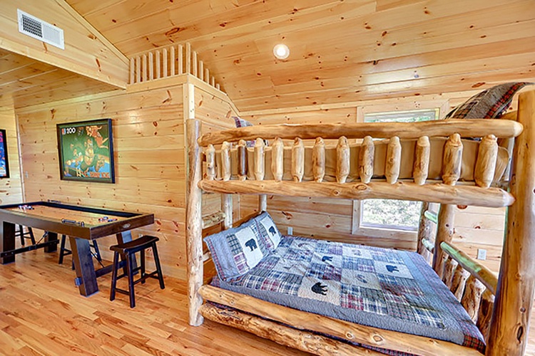 Located in Hidden Valley Resort just minutes from Gatlinburg’s Parkway, Mama Bear’s Den is a charming 3-bedroom, 3-bath retreat that sleeps up to 12 guests. Blending cozy luxury with entertainment-packed amenities and sweeping Smoky Mountain views, this cabin delivers a fun, family-friendly escape.