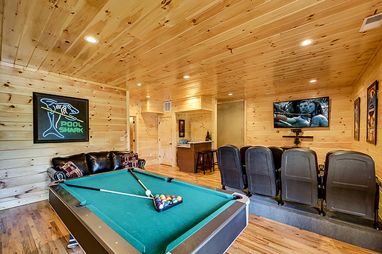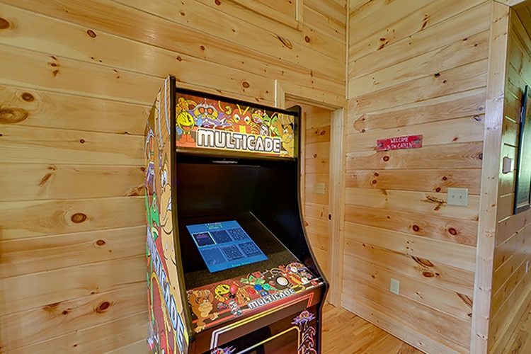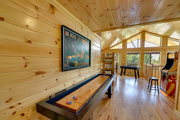 A dedicated game room and upper-level arcade loft offer pool table, foosball, shuffleboard, and multicade arcade games, while the home theater adds cinematic flair for cozy nights in. - Relaxing Hot Tub & Mountain Views