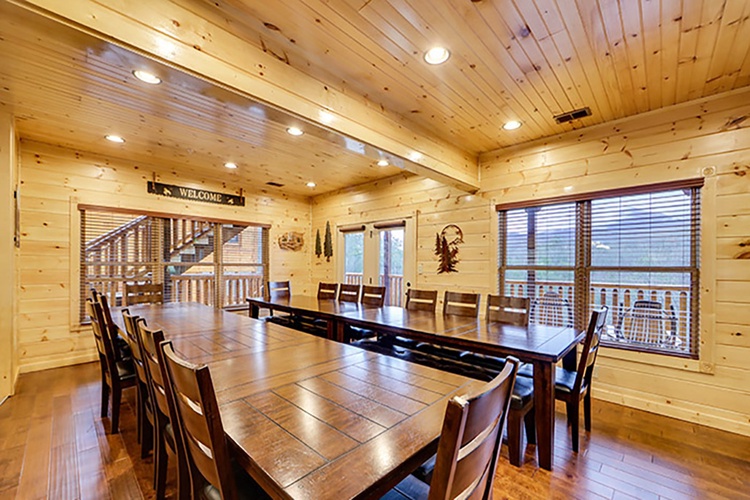 - Ample Accommodations: With 10 bedrooms, including king and queen beds, as well as bunk beds and sleeper sofas, the cabin comfortably sleeps up to 32 guests.