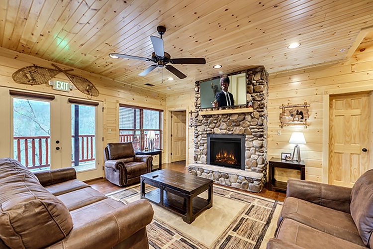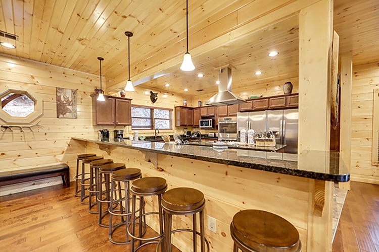 - Modern Conveniences: The cabin features a fully equipped kitchen, washer and dryer, complimentary Wi-Fi, and 12 flat-screen TVs with cable/satellite channels.
