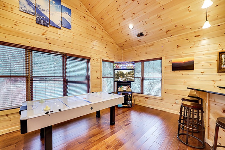 - Entertainment Galore: Enjoy a private home theater for movie nights, a game room equipped with a pool table, air hockey, pinball, and classic arcade games like Ms. Pac-Man, Galaga, and Golden Tee.