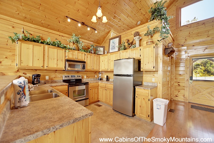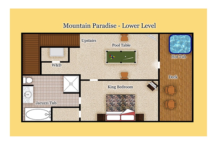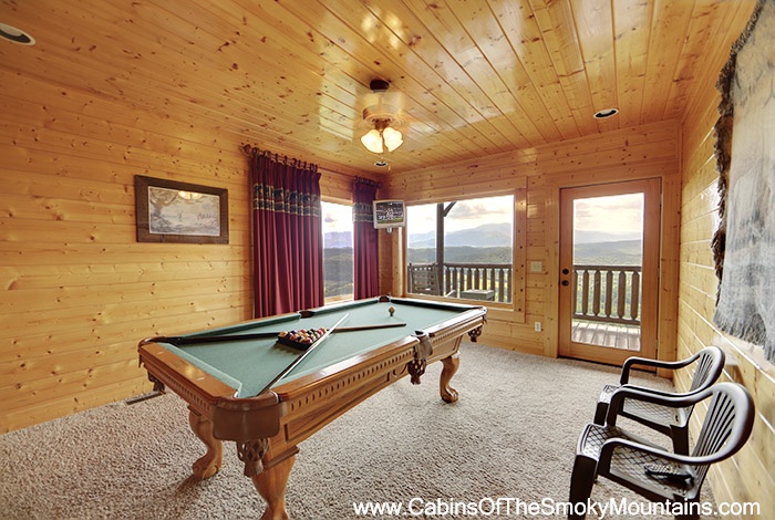 Relax in the private hot tub or marble-top Jacuzzi, enjoy evenings by the electric fireplace, and entertain in the cabin’s dedicated game area featuring a pool table and multicade arcade system. - Fully Equipped Living