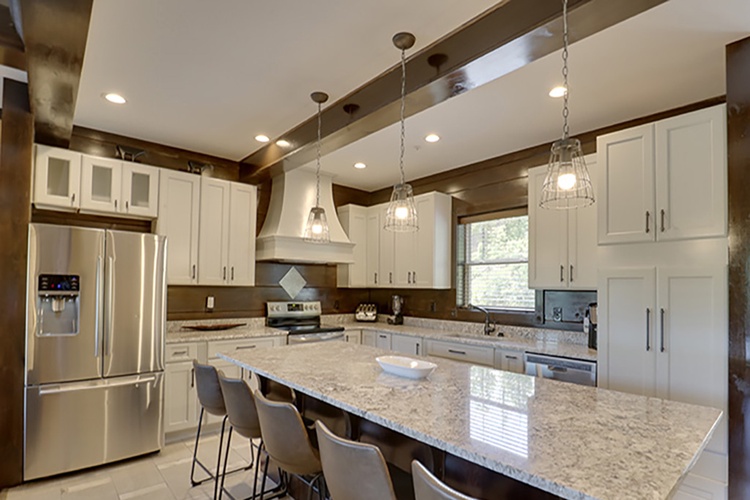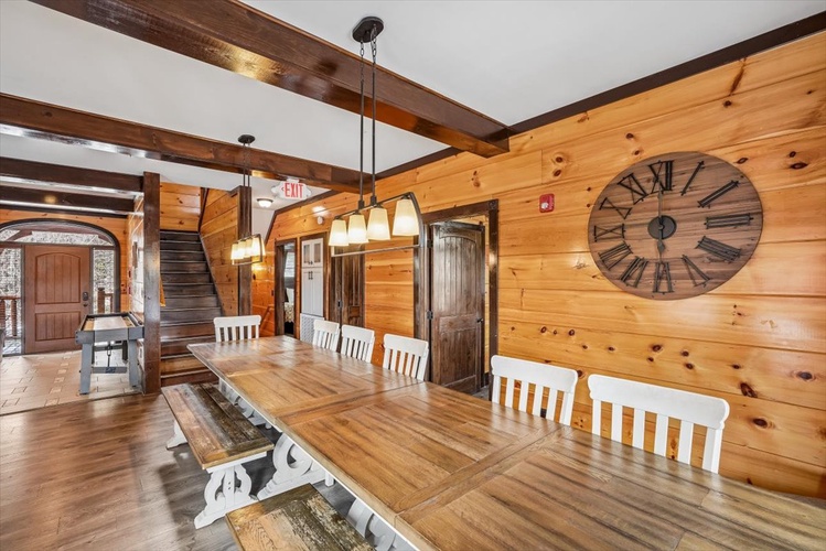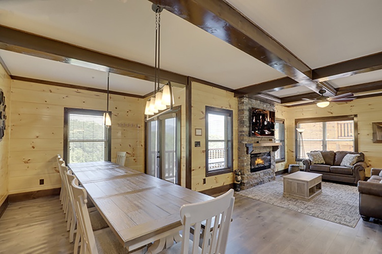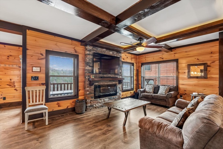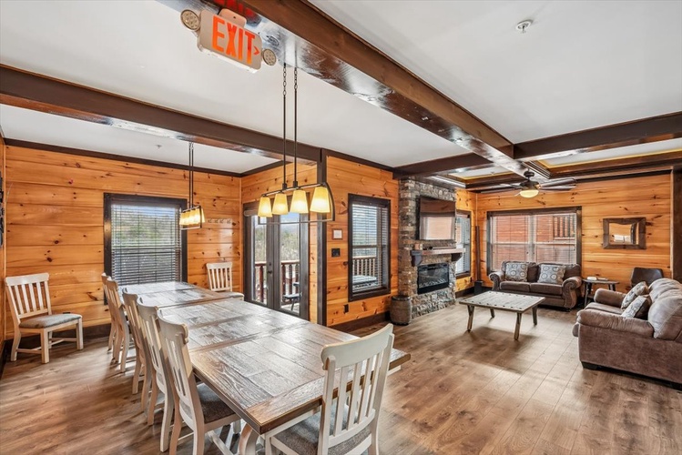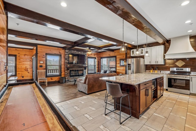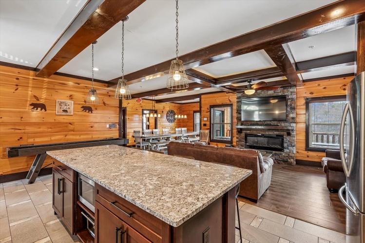 Five king bedrooms plus a queen bunk bed suite offer restful retreats. Plush memory‑foam mattresses, electric fireplaces, and flat-screen TVs ensure comfort across all levels. - Well‑Equipped Gathering Spaces