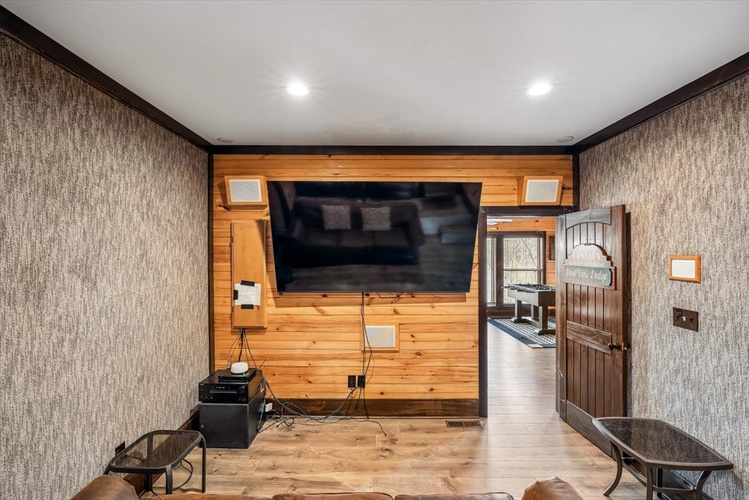Enjoy cinematic nights in the cozy home theater with a large screen and tiered seating—perfect for movie marathons or big-game viewings. - Comfortable & Spacious Accommodations