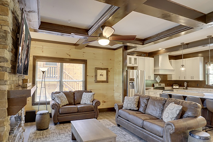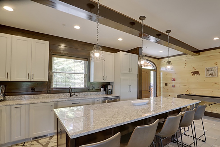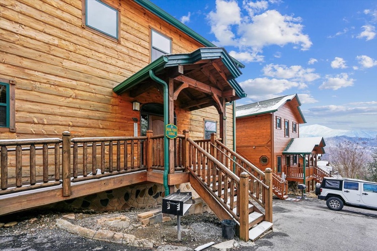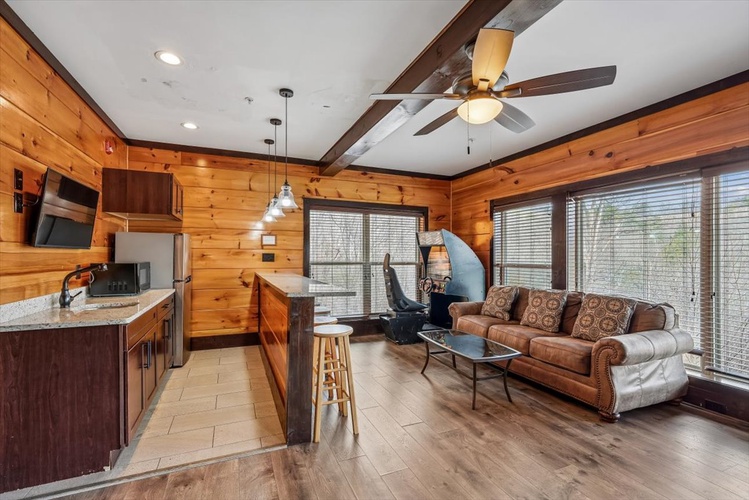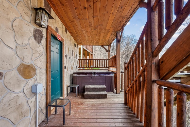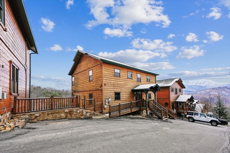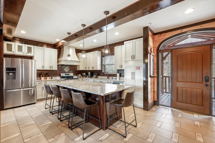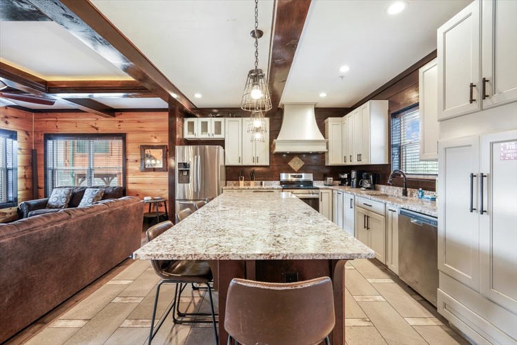The gourmet kitchen, wet bar, rocking-chair–lined decks, communal and private hot tubs, conference/wedding facility access, and complimentary resort pool elevate your stay. - Pet-Friendly & Smoke-Free