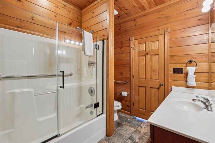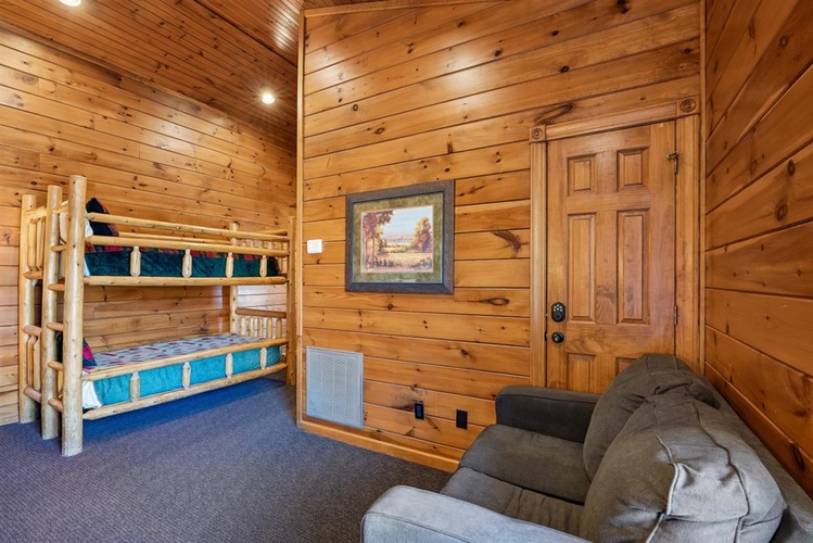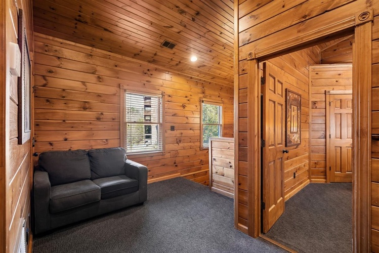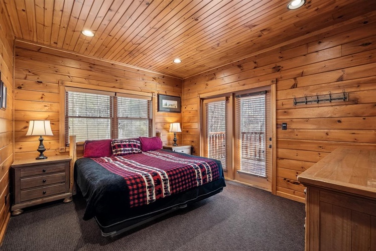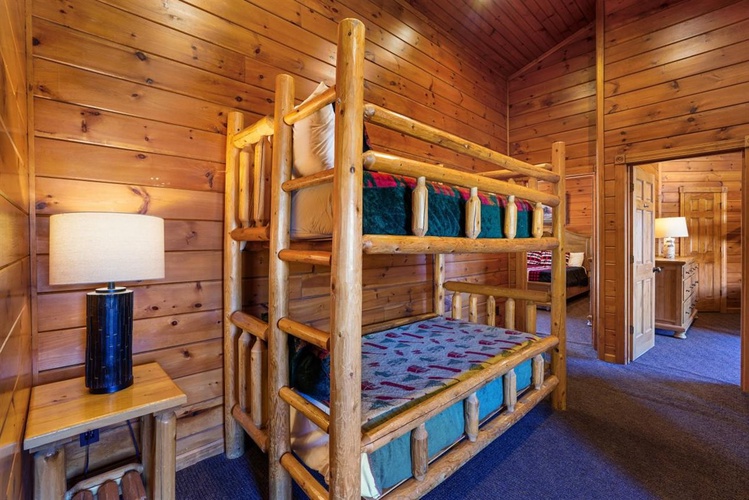 Ease into the 6-person hot tub after a day of adventure. Later, gather with loved ones in front of the cabins charcoal grill, park swing, fire pit, or sheltered picnic pavilion. - Flexible Sleeping Options