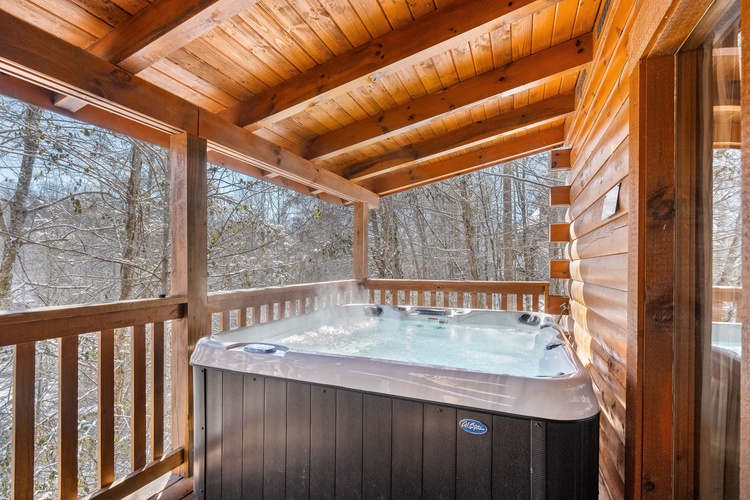 Soak in the hot tub on your covered deck, framed by forest views and watch for local wildlife like wild ducks in the resort.
