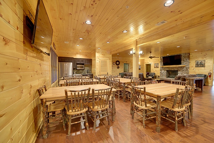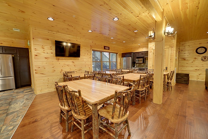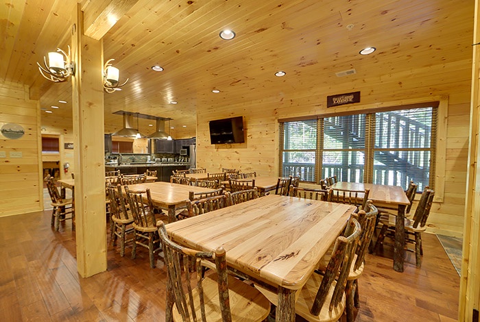 A chef’s dream, the lodge includes a massive fully equipped kitchen and dining area to accommodate big-group meals with ease. - Resort-Style Extras