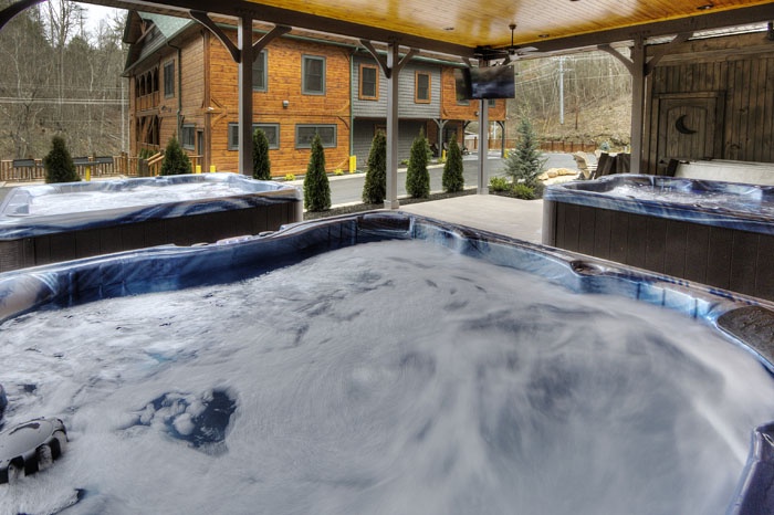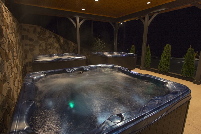 Three outdoor hot tubs and a fire pit set on expansive decks offer unobstructed views of Mount LeConte and the Smokies—perfect for sharing sunset cocktails or stargazing nights. - Multiple Gathering Areas