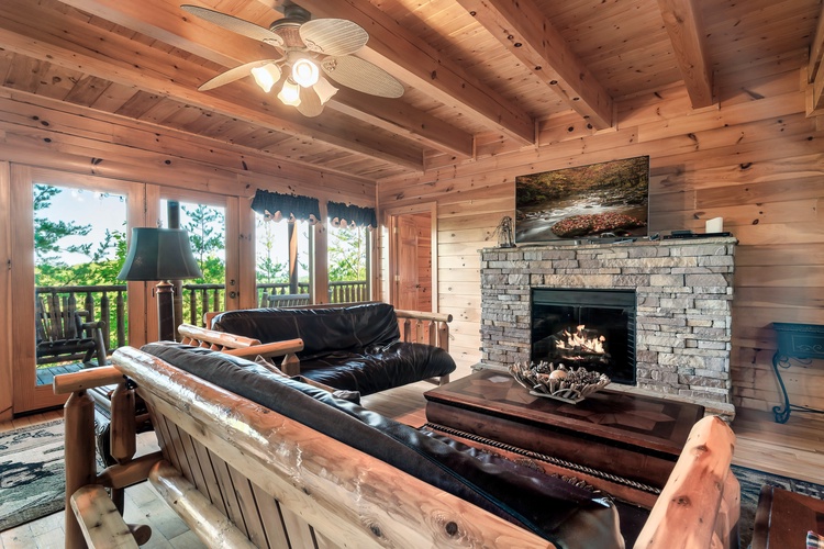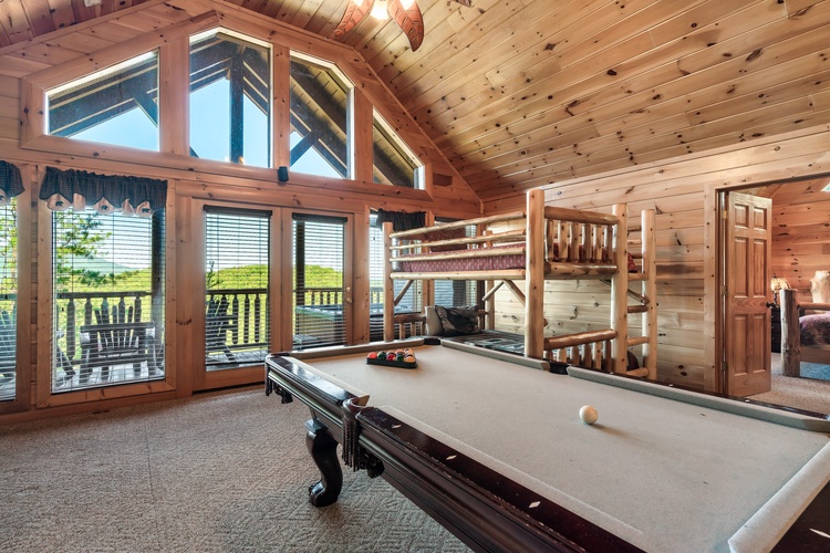 Floor-to-ceiling windows and a covered deck frame sweeping valley vistas—perfect for morning coffee, hot tub relaxation, or starlit conversations. - Entertainment Loft & Game Hub