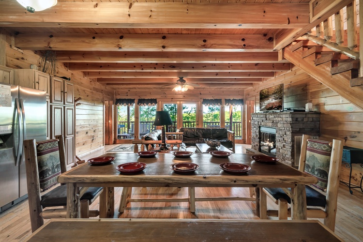 Nestled just minutes from the heart of Pigeon Forge, Valley View is a beautifully appointed 4-bedroom, 5-bath cabin that sleeps up to 16 guests. Perfect for families or groups seeking a mix of entertainment, comfort, and cinematic mountain panoramas, this lodge-style home delivers a magical Smoky Mountain escape.
