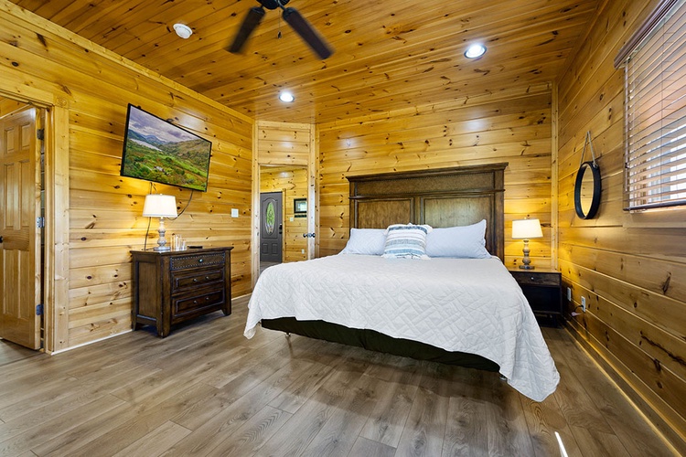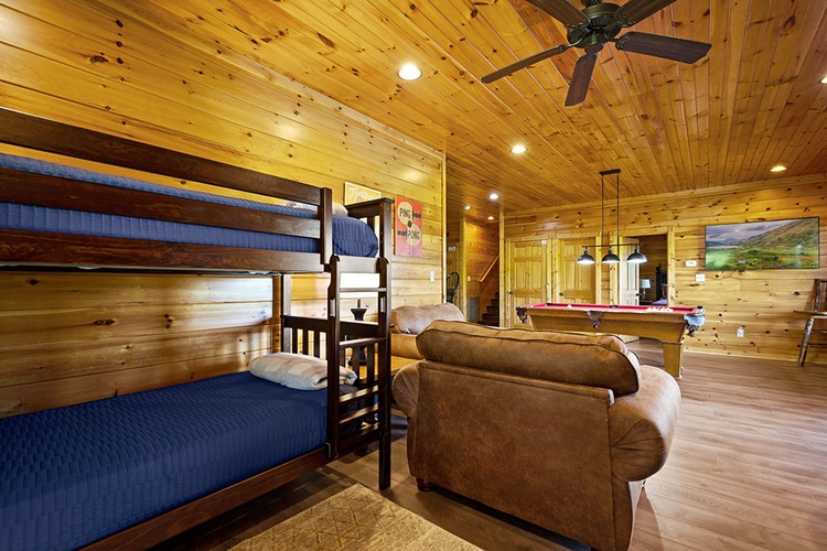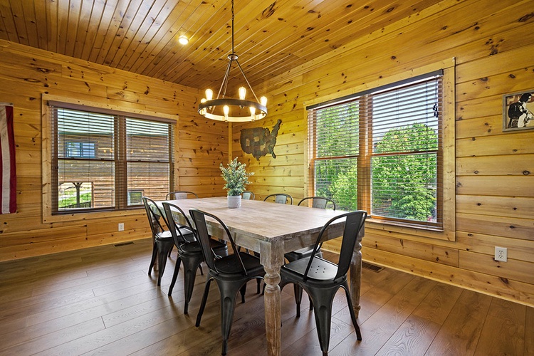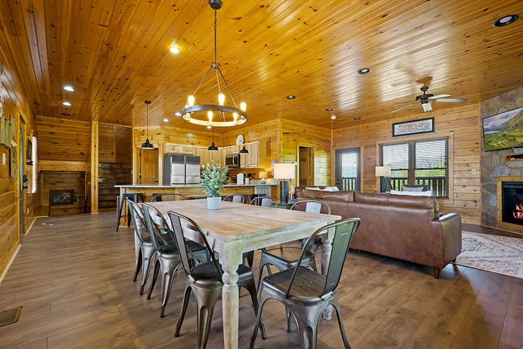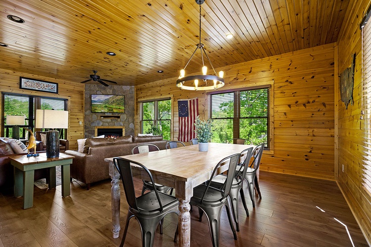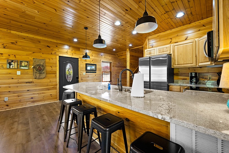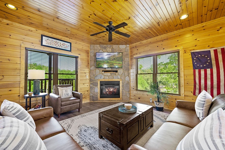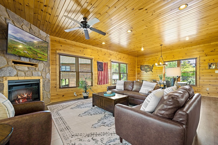 - Modern Conveniences: The cabin includes a fully equipped kitchen, washer and dryer, complimentary Wi-Fi, and seven flat-screen TVs with cable/satellite channels.