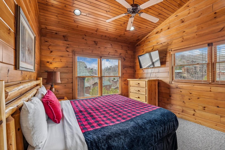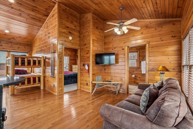 Escape to Viewtopia, a tastefully appointed 2-bedroom, 2-bath cabin nestled within Hidden Valley Resort in Gatlinburg. Accommodating up to 10 guests, this lodge-style retreat perfectly combines stunning mountain panoramas, entertainment, and modern comfort for a memorable Smokies experience.