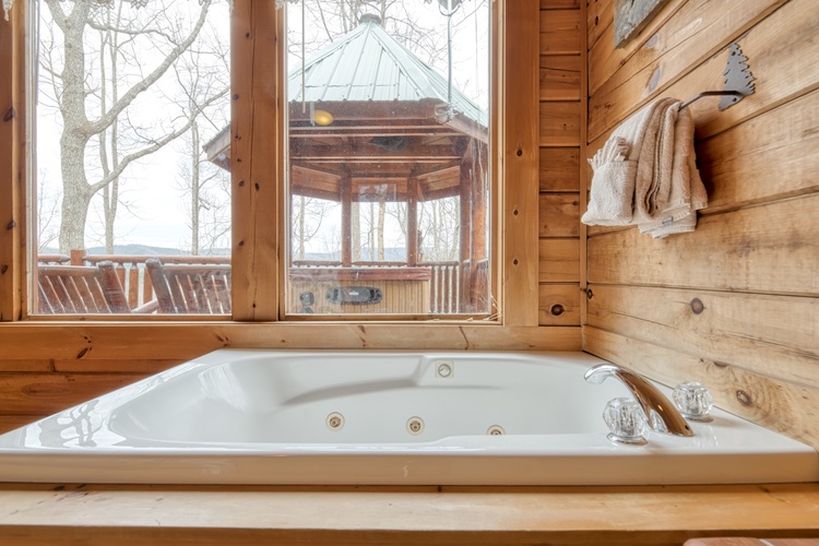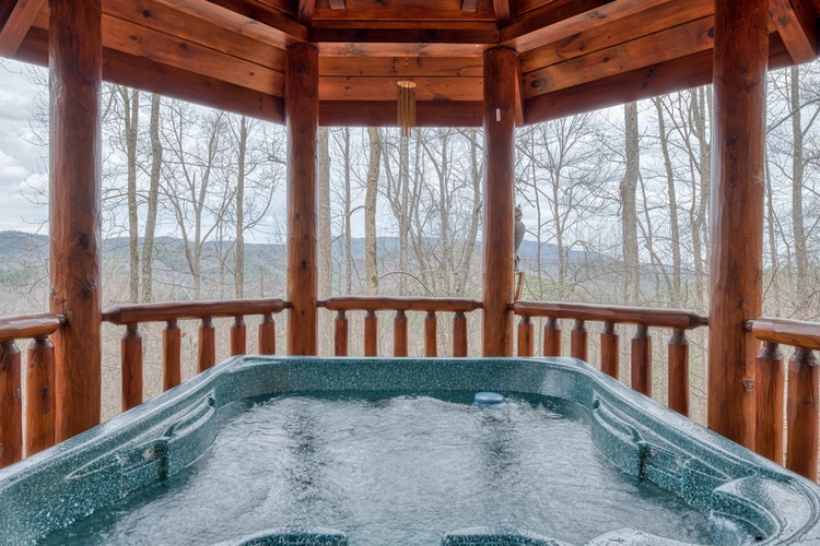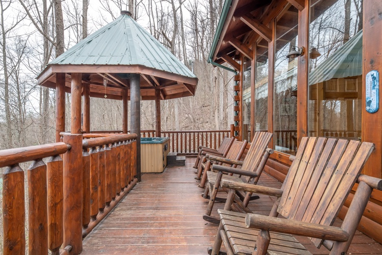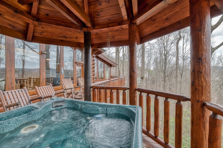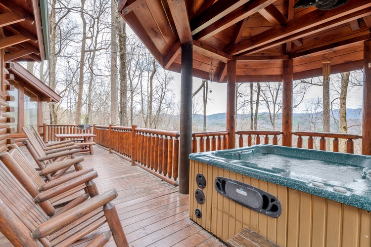 - Step outside to the expansive deck, where you'll find a hot tub, rocking chairs and a gas grill, perfect for enjoying the fresh mountain air and stunning views. The cabin's location within Brother's Cove Resort offers additional amenities, including seasonal access to a communal pool and hot tub.