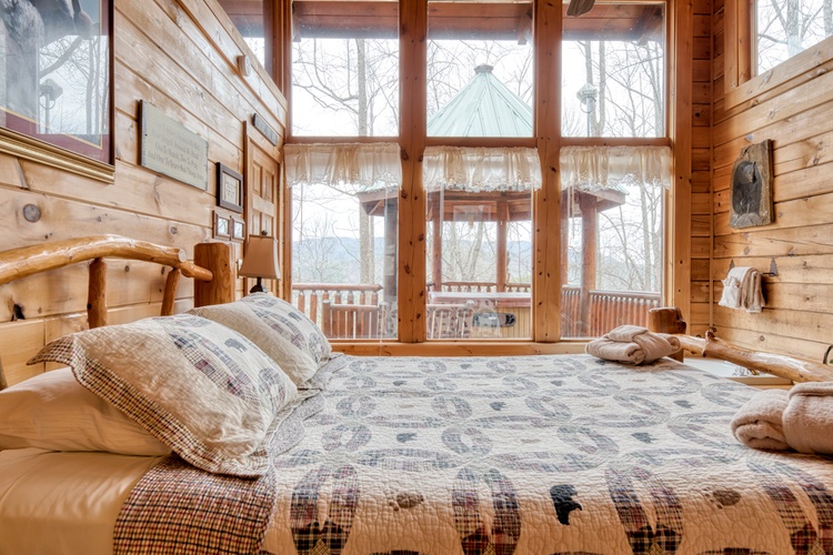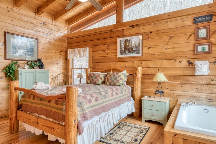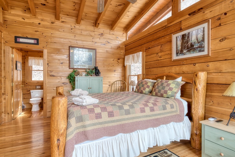 - The cabin features four generously sized bedrooms, each equipped with its own private bathroom, ensuring comfort and privacy for all guests. The sleeping arrangements include a king-sized bed in the master suite and a queen-sized bed in the second bedroom, along with one sleeper sofas in the living room area