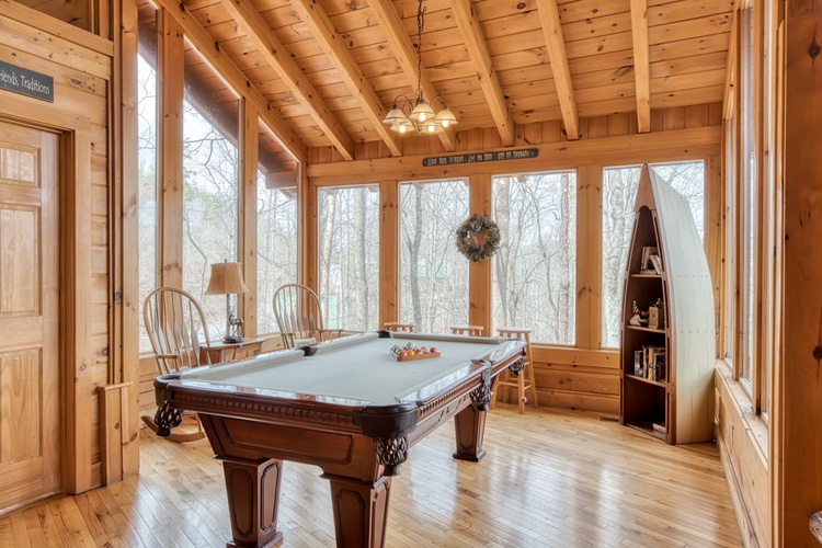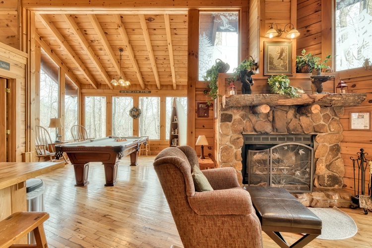 - Guests can enjoy a variety of entertainment options, including a game room with a pool table providing hours of fun for all ages. The cabin also features multiple flat-screen TVs, and high-speed internet access, ensuring everyone stays connected and entertained.
