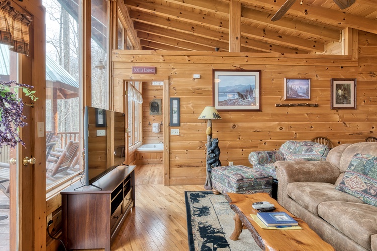 Nestled in the serene Brother's Cove Resort, Amazing Grace #25 is a beautifully appointed 2-bedroom, 2-bathroom log cabin that comfortably accommodates up to 6 guests. This expansive retreat offers a perfect blend of rustic charm and modern comfort, making it an ideal choice for family gatherings, reunions, or group getaways in the Smoky Mountains.