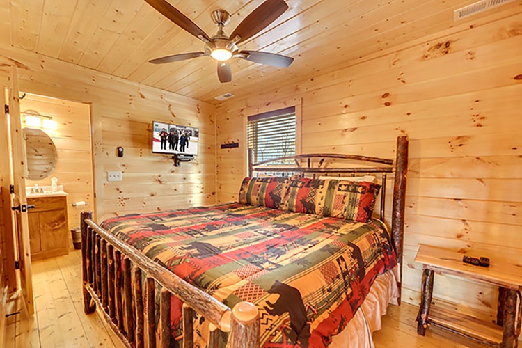 Perched in Hidden Springs Resort near Pigeon Forge, Appalachian Views is a luxurious, handicapped-accessible cabin featuring five bedrooms and 5½ bathrooms, sleeping up to 18 guests. Newly built in 2018, this mountain haven delivers sweeping Smoky Mountain panoramas, upscale comforts, and entertainment for every age.