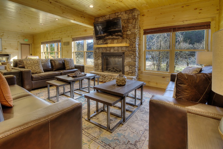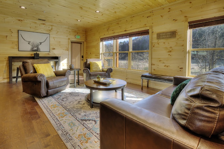 - Relaxation Amenities: Unwind in one of the two bubbling hot tubs on the covered porches, or relax in the rocking chairs while taking in the lush wooded park-style views.