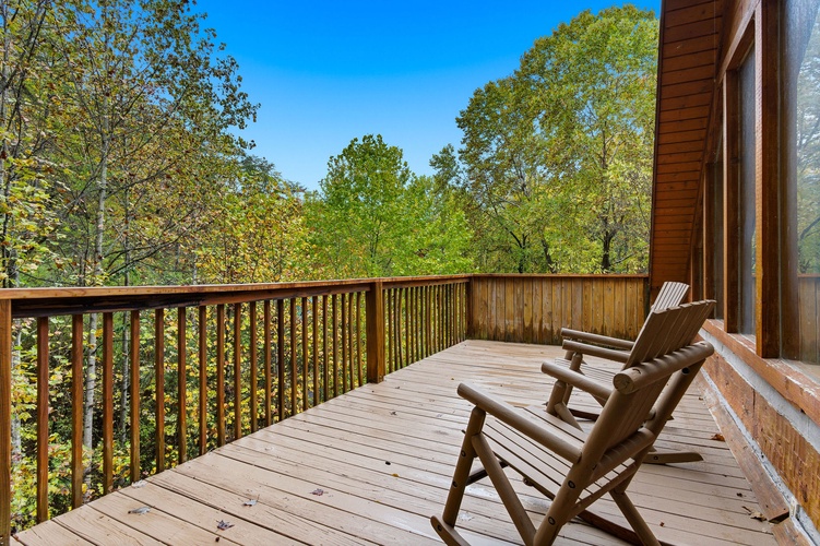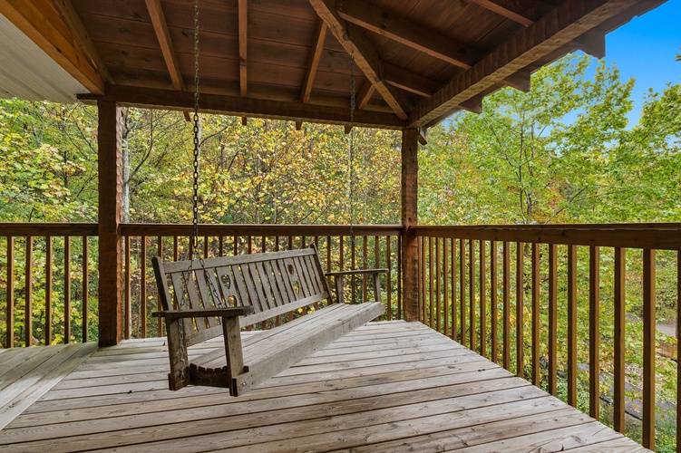 - Deck with rocking chairs, outdoor park swing, patio table, and charcoal BBQ make alfresco living a breeze.
