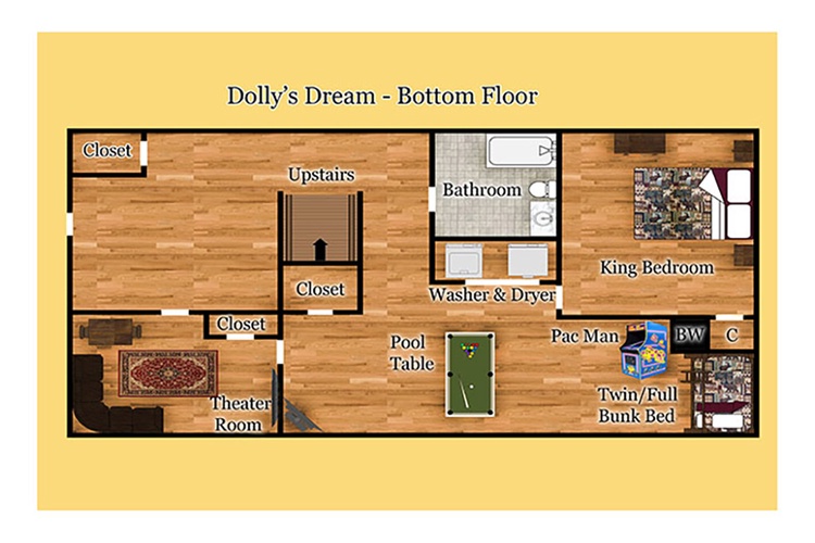 Dolly’s Dream offers a perfect blend of comfort, convenience, and entertainment, making it an ideal choice for your Smoky Mountain getaway. Whether you're seeking a relaxing retreat or an adventure-filled vacation, this charming cabin provides everything you need for an unforgettable experience. Immerse yourself in the warmth and charm of this delightful cabin, and create lasting memories in the heart of the Smokies.