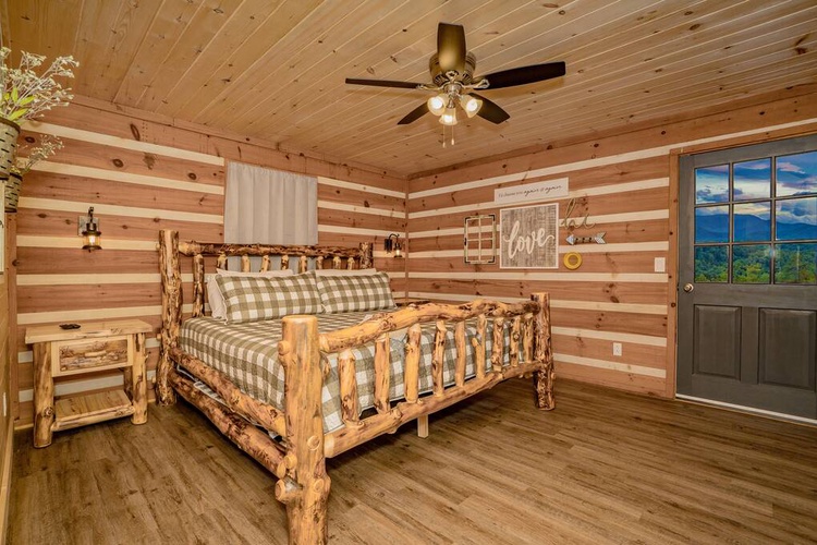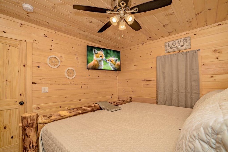 Four king bedrooms and a queen bunk room accommodate up to 12 guests. Every room comes with a flat-screen TV, and the cabin has Wi‑Fi throughout. - Modern Conveniences