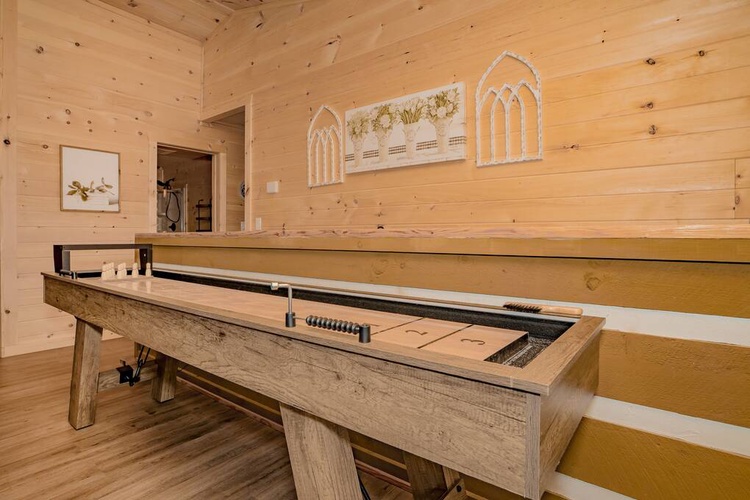 Equipped with a game room featuring shuffleboard, two multicade arcade machines (plus Buck Hunter), and a fully outfitted home theater—fun for every generation. - Relaxing Retreat