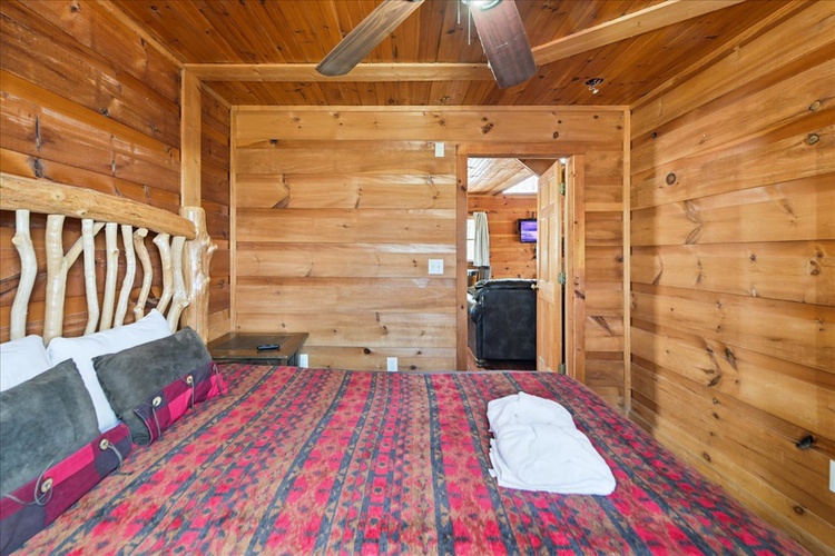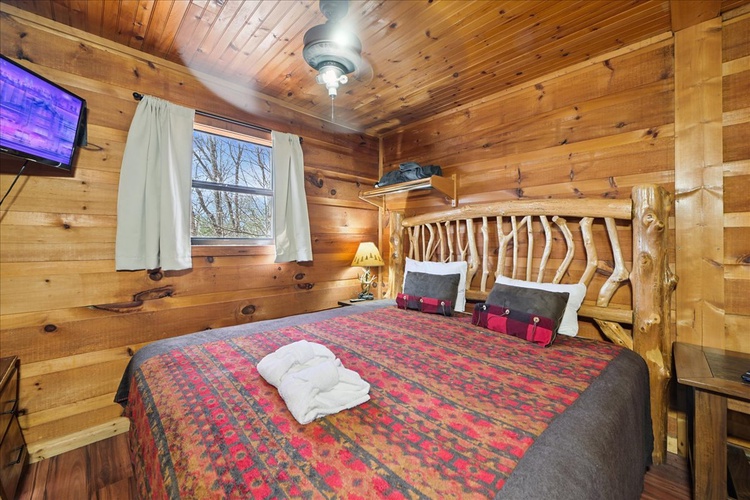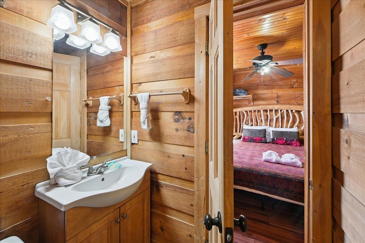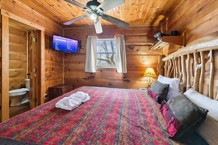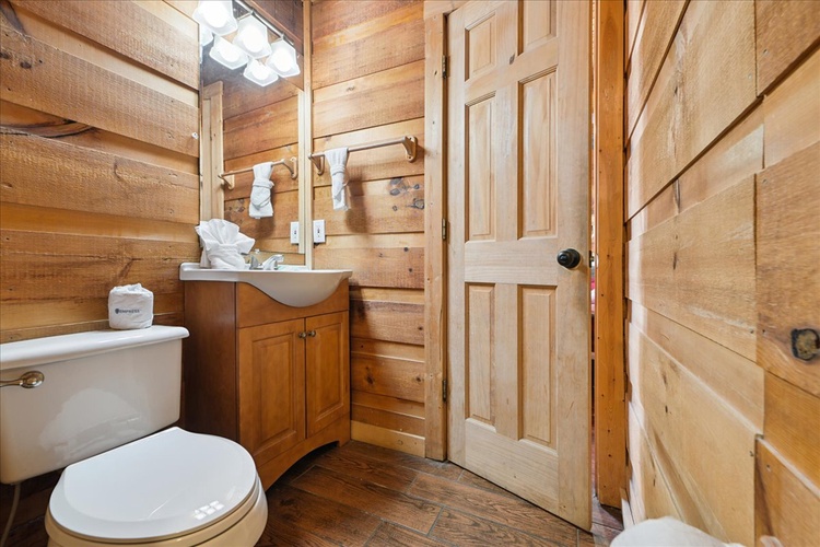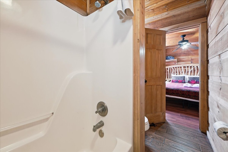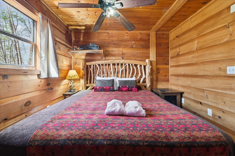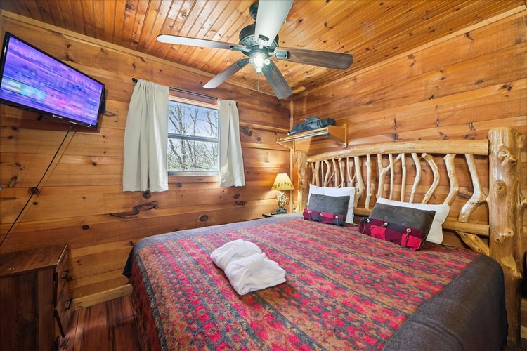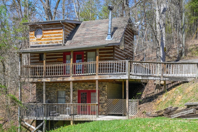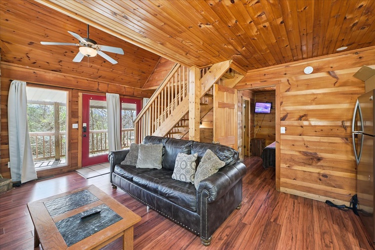 Tucked away offsite in Sevierville and just minutes from Dollywood, Dolly’s Hideaway is a charming 2-bedroom, 2-bathroom cabin that sleeps up to 8 guests. This tranquil retreat combines rustic warmth with modern comforts—ideal for families, friends, or couples seeking a peaceful Smoky Mountain escape.